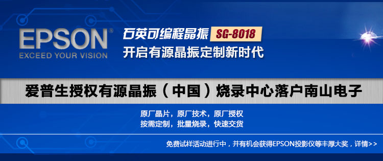 爱普生与球信网集团电子共同为有新品开发和型号替换需求的用户,免费提供SG-8018系列石英可编程晶振样品。